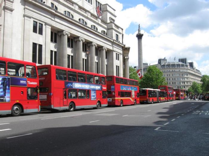 I saw this row of red buses all lined up at a signal at Trafalgar Square, while I was waiting for a bus on the opposite side to take me to Baker’s Street. The buses contrasted beautifully with the grey of the buildings, Nelson’s column and the road, as well as the cloudy blue sky.