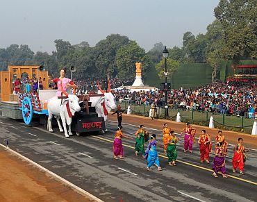 As for the tableaux from different states, they are so clichéd that one knows what each state’s tableau will be like. For instance, Kerala’s will have the mandatory Kathakali dancer, Maharashtra’s will have lavani dancers, Bihar’s will have the Buddha somewhere, Orissa’s will have the Puri temple somewhere on the float…