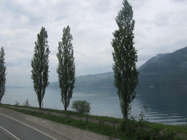 We pass the Brienzersee Lake, one of two lakes of Interlaken, the other being Thunersee. Even with the overcast skies, the lake is still a calming pale blue. We try to imagine what the lake would look like with clear blue skies…