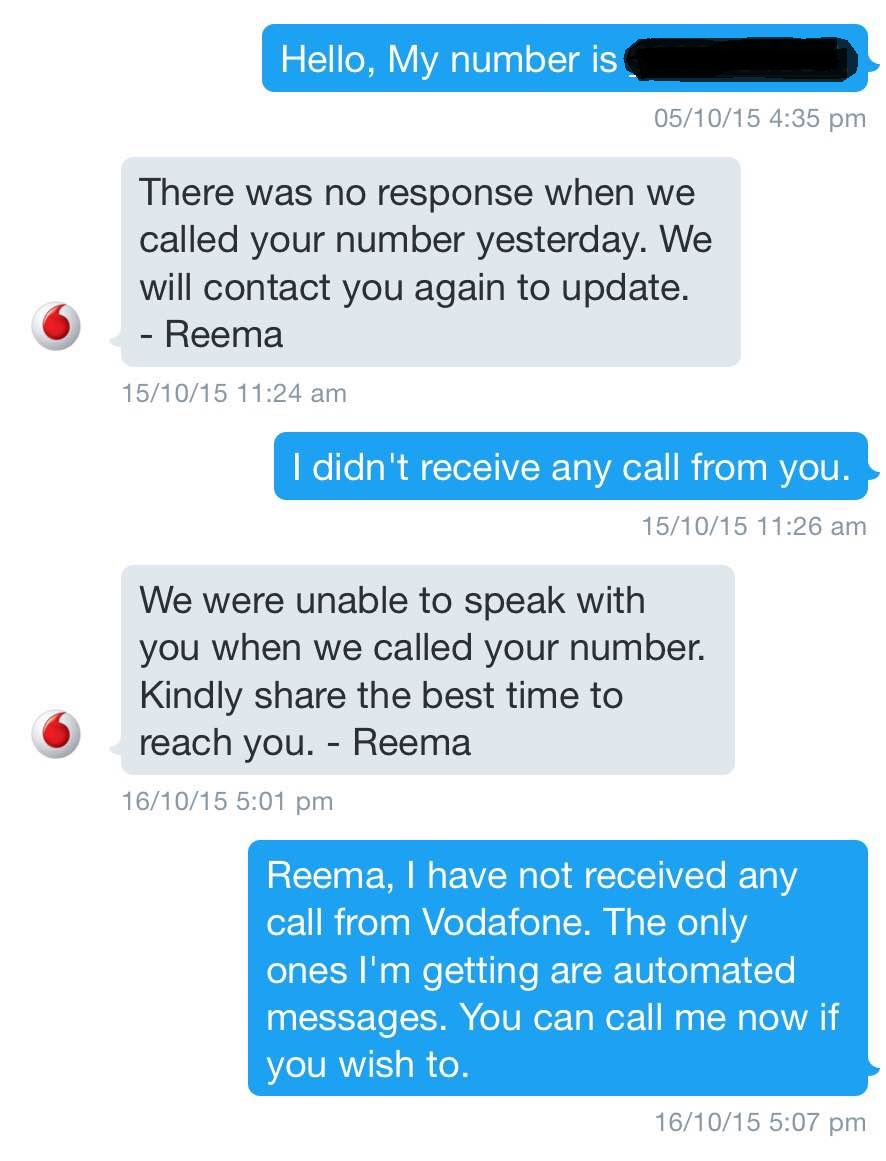 Thereafter, I get calls from 3 different people from Vodafone asking if my issue is resolved and if they can do anything for me. Yes, I say. I want to know what happened and why it happened. I’m sorry, they say, we cannot share what happened, but that action was being taken against those who gave wrong information. That is all they are willing to say.