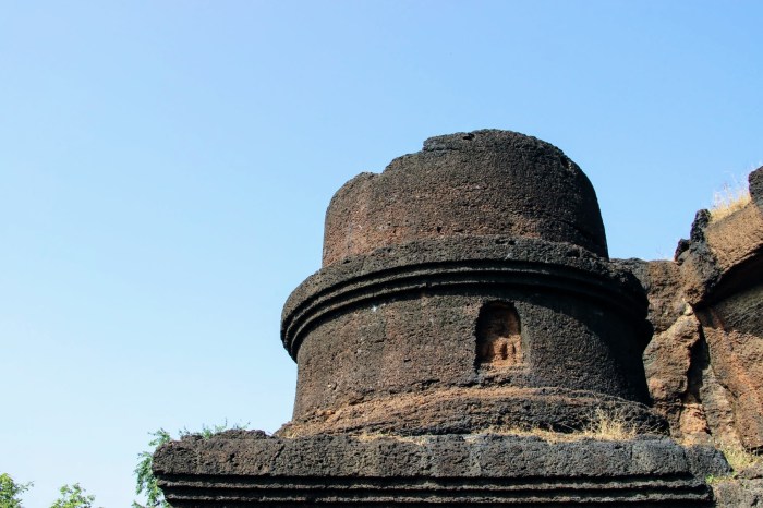 It says that the Kolvi Caves was a monastic complex of about 50 rock-cut caves, most of which have collapsed today and details have disappeared due to natural weathering. The presence of a big rock-cut stupa in the shape of a structural stupa, as we know it today, is considered to be an important and notable feature of the Kolvi Caves. It has been suggested that the absence of Bodhisattva figures at the site indicates that this was a site of Buddhist monks of the Hinayana (or Theravada) sect. The board doesn’t mention an important detail — the age of the Caves.