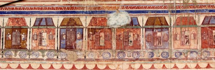 The Dr. Ramnath A. Podar Haveli Museum at Nawalgarh in the Shekhawati region of Rajasthan was built in 1902. Originally a residence and known as Podar Haveli, it was converted into a museum after major renovation and restoration works were undertaken of the frescoes and murals that cover every inch of its exterior and interior walls.
